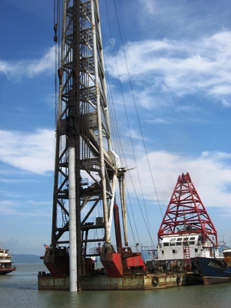 7月15日,三公司舟山中遠(yuǎn)船務(wù)八號(hào)碼頭引橋樁基工程響錘,中海樁8船打下了該工程第一根長(zhǎng)47米、Φ1000mm的PHC樁,標(biāo)志著八號(hào)碼頭施工正式拉開(kāi)帷幕。