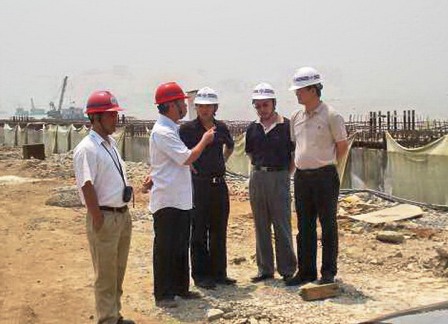 7月26日,四航局總經(jīng)理孫國強(qiáng)、副總經(jīng)理方丘洚一行在福州分公司經(jīng)理楊茯苓的陪同下,冒酷暑到海滄18-19號泊位檢查指導(dǎo)工作。