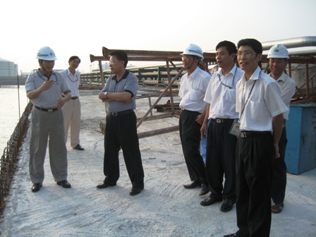近日,湛江港董事長鄭日強一行到湛江港寶滿集裝箱碼頭一期工程和湛江港股份有限公司新建油碼頭工程施工現(xiàn)場檢查指導(dǎo)工作,并聽取了施工進(jìn)度、安全質(zhì)量以及防御臺風(fēng)"海高斯"的情況匯報。