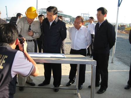 11月12日下午,省委書(shū)記汪洋在湛江市領(lǐng)導(dǎo)及湛江龍騰物流有限公司等領(lǐng)導(dǎo)的陪同下,到東海島湛江龍騰物流有限公司球團(tuán)項(xiàng)目碼頭工程視察。