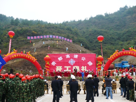 當(dāng)天下午二點(diǎn)三十分,在一片鑼鼓聲、鞭炮聲中,業(yè)主中交投資公司在貴都高速第十一合同段新場隧道舉行開工儀式,標(biāo)志著貴都高速公路正式進(jìn)入施工階段。