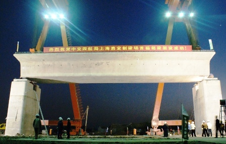 12月10日,四航局京滬高鐵項目部成功架設(shè)第一片箱梁。首片架設(shè)箱梁全長32.6米、高3.078米,重約840噸。