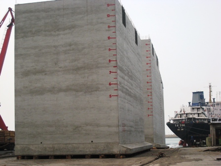 該工程自2008年6月26日開工以來(lái),已完成44個(gè)沉箱的預(yù)制工作,堆滿約 2.2萬(wàn)平方米的預(yù)制場(chǎng)地。目前,基床水下施工已超計(jì)劃完成,半潛駁船計(jì)劃于本月底進(jìn)場(chǎng),項(xiàng)目部員工現(xiàn)正加快步伐,有條不紊地進(jìn)行沉箱的各項(xiàng)安裝準(zhǔn)備工作。