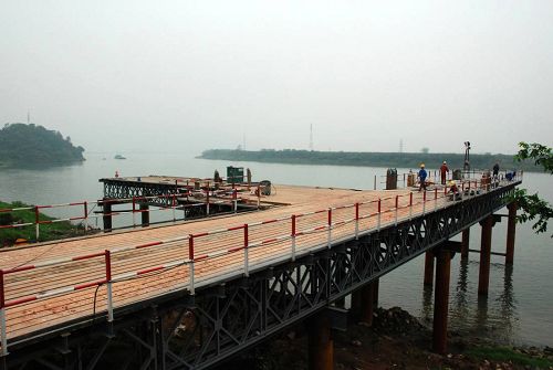 目前,鉆孔平臺正在緊張搭建中,并施打鋼管樁4根。西岸鋼棧橋也于3月17日開始施工,現(xiàn)已完成起始橋臺施工及第一跨鋼棧橋的施工。