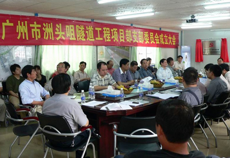 4月16日上午,廣州市中心區(qū)交通項(xiàng)目辦在洲頭咀隧道工程二標(biāo)段召開了洲頭咀隧道工程項(xiàng)目部臨時(shí)黨支部成立大會(huì),交通項(xiàng)目辦黨委副書記、紀(jì)委書記謝魁云主持會(huì)議并通過了黨支部工作細(xì)則及2009年度工作計(jì)劃。項(xiàng)目辦黨委書記、主任杜全喜、副主任蔡勝、總工程師薩兆照、總經(jīng)濟(jì)師邵云等辦領(lǐng)導(dǎo)及廣州市市政工程安全質(zhì)量監(jiān)督站王大通站長(zhǎng)出席了大會(huì)。洲頭咀隧道參建單位中交四航局、廣州市政集團(tuán)總公司、廣州市政監(jiān)理有限公司、廣州市穗高監(jiān)理有限公司的有關(guān)黨政領(lǐng)導(dǎo)出席了會(huì)議。四航局黨委副書記阮祥發(fā)、二公司黨委書記萬軍杰參加會(huì)議。