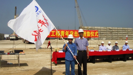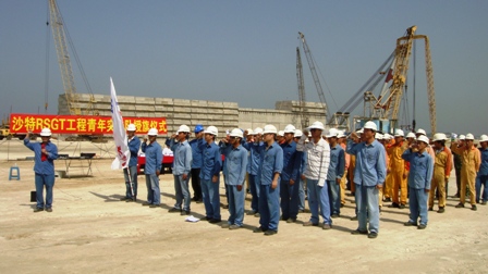 4月26日,阮祥發(fā)副書記一行到沙特吉達港RSGT項目,深入到岸上施工一線和數(shù)十公里外戈壁沙漠中的采石場了解項目組織實施情況,并參加了項目部創(chuàng)建青年文明號的"青年突擊隊"授旗儀式,親自為項目部青年突擊隊授旗。在吉達港,針對項目部所處的穆斯林宗教特殊環(huán)境和項目部員工生活相對比較枯燥單調(diào)的情況,阮祥發(fā)除了與員工談心,和班子座談,和員工共用工作餐外,還登上起九船組和方駁8401,看望慰問船員,與船員座談和共進午餐,了解船員心聲,大大鼓舞了項目部員工士氣。