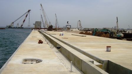 4月21日上午,阮祥發(fā)副書記在斯里蘭卡首都科倫坡會訪了中港駐斯里蘭卡辦事處負責人唐橋梁,了解了中港在當?shù)氐氖袌鲩_拓情況以及漢班托塔項目運行情況。當天下午,阮祥發(fā)一行又趕到數(shù)百公里之外的漢班托塔,深入一線察看指導工作。在深入攪拌站、機械維修車間、采石場,東西防波堤、扭王字塊預(yù)制場、港池圍堰、基坑開挖、工作船碼頭等施工現(xiàn)場了解工程實施情況及察看項目部及分包隊伍營區(qū)和看望現(xiàn)場管理人員和施工人員后,阮祥發(fā)副書記充分肯定了營區(qū)環(huán)境的優(yōu)美整潔、現(xiàn)場施工規(guī)模的壯觀和項目員工良好的精神面貌,他稱贊"項目部花園式的營區(qū)建設(shè)在四航局海外項目首屈一指,為員工提供了優(yōu)美舒適的生活和工作環(huán)境",并對項目部的海外項目文化建設(shè)作出了具體指導。