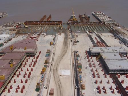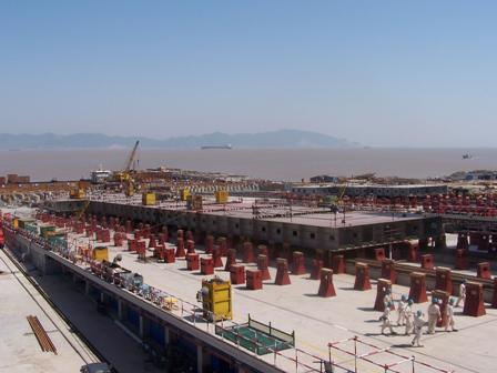 5月9日,舟山中遠(yuǎn)一號(hào)船臺(tái)鋼套箱的成功下沉到位,標(biāo)志著船臺(tái)工程水下段現(xiàn)澆全面展開(kāi)。