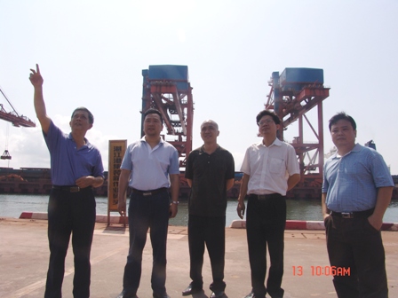 李主任一行首先驅(qū)車到湛江港,實地考察了早年由三公司承建、正在繁忙作業(yè)的集裝箱作業(yè)區(qū),對集裝箱碼頭使用多年,工程的質(zhì)量仍然保持完好給予了高度的評價。同時,李主任一行還拜訪了湛江市港務(wù)集團有關(guān)部門負(fù)責(zé)人,雙方就設(shè)備采購與管理、員工技能培訓(xùn)、港口規(guī)劃等方面進行了交談,交流了加強港口建設(shè)管理等方面的經(jīng)驗。