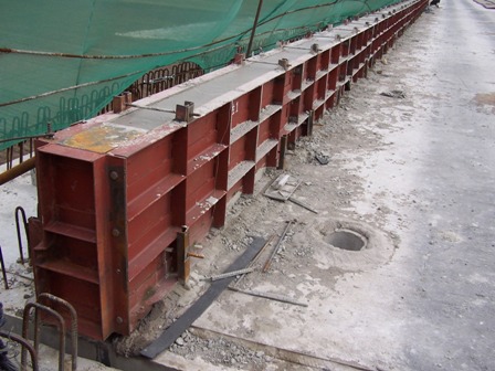 5月17日, 四航哈大橋面系第一跨防護墻順利澆注成功,標志著哈大橋面系施工全面拉開序幕。