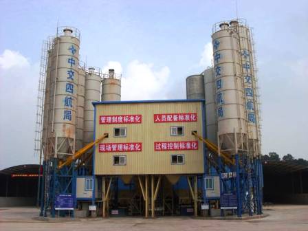 該攪拌站占地面積26000平方米,配備了2座HZS120型攪拌機組,18個粉料儲罐,日最高生產(chǎn)能力4000立方米 ,主要承擔(dān)一項目經(jīng)理部施工轄區(qū)內(nèi)DK770+700~DK776+049.84段施工用混凝土的生產(chǎn)任務(wù)。