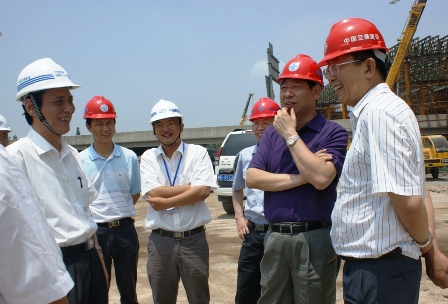 6月17日,中交股份總裁孟鳳朝一行在京滬高鐵六標(biāo)段項(xiàng)目部常務(wù)副總經(jīng)理王建和四航局副總經(jīng)理羅寬榮的陪同下,蒞臨京滬高鐵項(xiàng)目部視察。