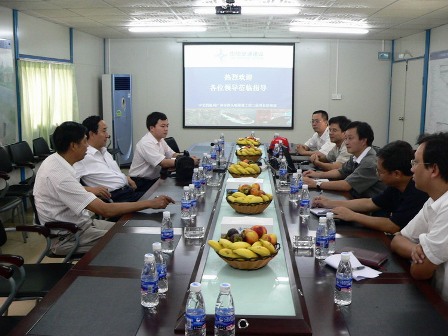6月25日下午,中交集團(tuán)學(xué)習(xí)實(shí)踐科學(xué)發(fā)展觀活動(dòng)巡回指導(dǎo)檢查組長(zhǎng)張寧驥等一行,在四航局黨委副書(shū)記阮祥發(fā)的陪同下,蒞臨洲頭咀項(xiàng)目部,檢查基層黨支部貫徹中交集團(tuán)開(kāi)展深入學(xué)習(xí)科學(xué)發(fā)展觀活動(dòng)方案的情況。