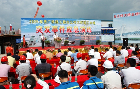 四航局黨委副書記阮祥發(fā),佛山市安監(jiān)局、海事局和貴廣鐵路佛山段監(jiān)理、施工單位領(lǐng)導(dǎo)到演練現(xiàn)場(chǎng)觀摩并講話,對(duì)本次演練活動(dòng)給予充分肯定,希望四航局貴廣鐵路工程指揮部和佛山市海事局通過(guò)本次演練,進(jìn)一步把貴廣鐵路建設(shè)的各項(xiàng)安全工作做得更實(shí)、更細(xì)、更好,確保安全生產(chǎn),切實(shí)提高突發(fā)事件的應(yīng)急處置能力,最終實(shí)現(xiàn)"構(gòu)建平安貴廣鐵路"的目標(biāo)。