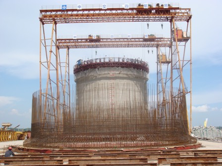 8月28日,欽州港大欖坪3號-8號泊位碼頭工程首個圓筒順利澆筑完成。