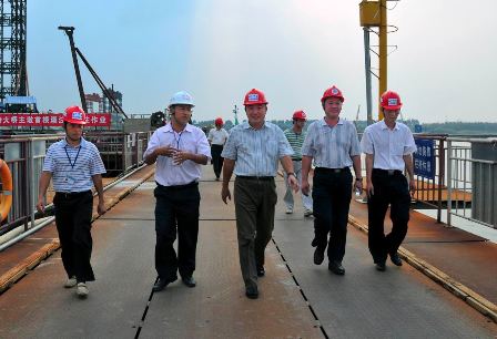 董事長梁卓仁一行還前往北江特大橋施工現(xiàn)場,察看了大橋的施工進(jìn)展情況,并聽取了四航局貴廣指揮部關(guān)于工程進(jìn)展情況匯報。梁卓仁強(qiáng)調(diào),要善于抓主要矛盾,理清工作思路,分清職責(zé),變壓力為動力,做到有的放矢;要嚴(yán)格按照"六位一體"要求,樹立四航局鐵路建設(shè)的"一面旗幟";要不斷總結(jié)安全質(zhì)量特別是科技創(chuàng)新工作中的經(jīng)驗(yàn),一次創(chuàng)新就要出一批成果,出一批人才;要合理融合資源與成本,不斷提高員工技術(shù)才能;要以謙恭、不卑不亢的工作姿態(tài),正確處理好各方關(guān)系,講正氣、講公道。