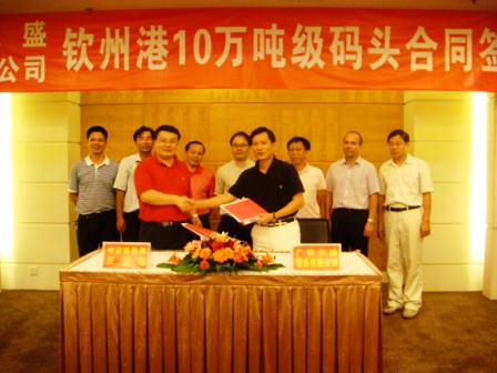 9月24日下午,廣西天盛港務(wù)有限公司欽州港十萬(wàn)噸級(jí)散貨碼頭工程合同簽字儀式在廣西南寧舉行。三公司總經(jīng)理何勇、廣西天盛港務(wù)有限公司董事長(zhǎng)陳耀宗分別代表施工單位和建設(shè)單位在合同上簽字。