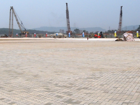 通過多項(xiàng)舉措,該項(xiàng)目部的施工管理和工程進(jìn)度收到了明顯成效,截至目前,已完成120000m2的聯(lián)鎖塊預(yù)制,鋪筑水泥穩(wěn)定層160000 m2 ,達(dá)到70%,大部分堆場和倉庫基礎(chǔ)施工已完畢,各項(xiàng)施工正進(jìn)入高效有序地沖刺階段,有望實(shí)現(xiàn)11月上旬初驗(yàn)的工期目標(biāo)。