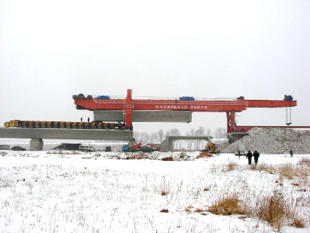 四航局長春制梁場507榀900噸簡支箱梁架設(shè)任務(wù)由哈大項(xiàng)目部橋梁安裝隊承擔(dān),該安裝隊自2008年9月26日開架第一片梁以來,努力克服連續(xù)梁、鋼箱疊拱橋和其它外部施工的影響,精心組織施工,抗冰雪、拼進(jìn)度,于今年7月10日完成首架254榀箱梁的架設(shè)任務(wù),隨后又緊張開展次架方向的架設(shè)。經(jīng)過安裝隊全體員工的努力奮戰(zhàn),最終順利完成了長春梁場的全部箱梁架設(shè)任務(wù),為哈大項(xiàng)目部完成管段所有架梁任務(wù)打下了堅實(shí)的基礎(chǔ)。