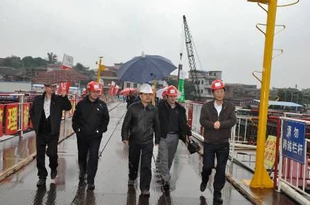 羅軍利一行參觀了北江特大橋、中心試驗(yàn)室、4號(hào)攪拌站及南海制梁場(chǎng)等施工現(xiàn)場(chǎng)。