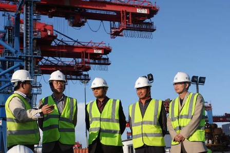 2月26日,中國(guó)駐埃及武春華大使、經(jīng)商處曹甲昌公參一行在中港總項(xiàng)目經(jīng)理高洪斌、中港埃及子公司經(jīng)理傅丹的陪同下,到四航局一公司埃及塞得東港項(xiàng)目視察慰問(wèn),向春節(jié)期間堅(jiān)守崗位的全體員工恭賀新年。
