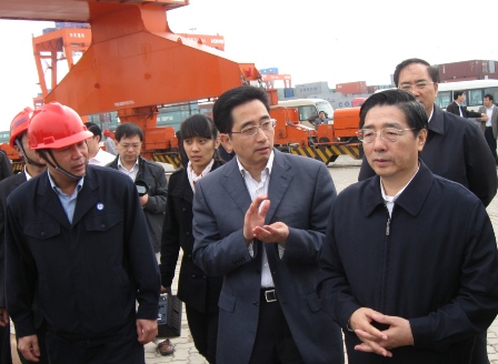 4月1日,陜西省委書記趙樂際一行在廣西自治區(qū)黨委書記、人大常委會(huì)主任郭聲琨,自治區(qū)政協(xié)主席馬鐵山和欽州市委書記、市人大常委會(huì)主任張曉欽的陪同下,到欽州保稅港區(qū)深入了解1、2號(hào)泊位碼頭運(yùn)營(yíng)情況,并考察了三公司欽州港項(xiàng)目部承建的3-8號(hào)泊位碼頭施工現(xiàn)場(chǎng)。