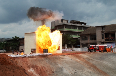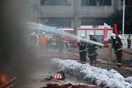 本次演習(xí)是中交股份廣泛深入開展"安全生產(chǎn)月"的一項重要活動,演習(xí)結(jié)合華南地區(qū)臺風多發(fā)的實際,針對目前社會關(guān)注的坍塌問題,共模擬防臺、圍堰防洪、塔吊加固、基坑坍塌、天然氣爆炸失火及人員疏散等六個場景。