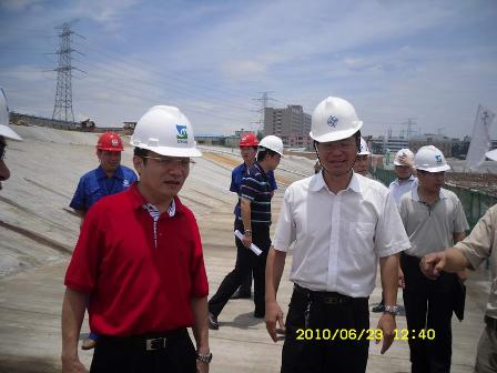 近日,深圳市水務(wù)局副局長(zhǎng)李長(zhǎng)興在建管中心主任陳杰、質(zhì)監(jiān)站站長(zhǎng)宋軍一行的陪同下,到二公司深圳寶安沙井項(xiàng)目部檢查指導(dǎo)工作。