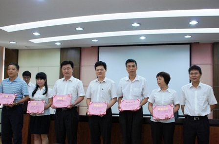 張夏明書(shū)記回顧了上半年本部黨委工作情況,并對(duì)公司本部今年開(kāi)展“抓落實(shí)促發(fā)展”主題活動(dòng)作下一步的部署安排。會(huì)議表彰了公司本部2008—2009年度在“創(chuàng)先爭(zhēng)優(yōu)”活動(dòng)中取得優(yōu)異成績(jī)的3個(gè)先進(jìn)黨支部、26名優(yōu)秀共產(chǎn)黨員及10名優(yōu)秀黨務(wù)工作者;并表彰了2009年度公司本部崗位立功集體和個(gè)人;11名新黨員面向鮮紅的黨旗進(jìn)行莊嚴(yán)的宣誓。梁卓仁書(shū)記、孫國(guó)強(qiáng)總經(jīng)理、張猛副書(shū)記分別為先進(jìn)黨支部、優(yōu)秀黨員和黨務(wù)工作者、立功集體和個(gè)人進(jìn)行了頒獎(jiǎng)。