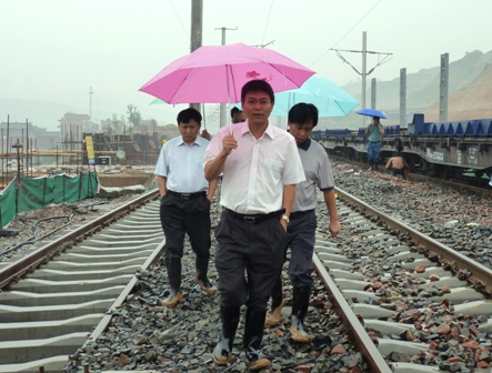 9月19日,四航局總經(jīng)理孫國(guó)強(qiáng)、副總經(jīng)理周達(dá)培一行到太中銀項(xiàng)目考察指揮抗洪搶險(xiǎn)工作,強(qiáng)調(diào)要抓緊一切時(shí)間,克服困難,積極推進(jìn)搶修工作,盡快恢復(fù)施工生產(chǎn),確保太中銀鐵路按時(shí)通車。