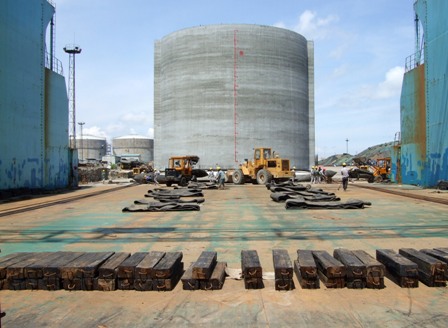 "四航防城港"船組由"四航防城港"半潛駁和"粵工拖41"兩艘船舶組成。2009年11月,該船組承擔(dān)了廣西片區(qū)欽州港、防城港工地221件大型薄壁圓筒的安裝任務(wù),工期緊、任務(wù)重。該船組自2009年11月10日在欽州港大欖坪工程開始施工以來,科學(xué)組織,合理排序,輪班倒置,精心施工,往返于欽州港、防城港工地,在不到一年的時(shí)間(其中2010年10月為停工待料),完成了正常情況下需兩套同等功率的船組同時(shí)施工才能完成的施工任務(wù),創(chuàng)下了單月安裝25件大型水工構(gòu)件的記錄,受到項(xiàng)目部和業(yè)主的充分肯定。