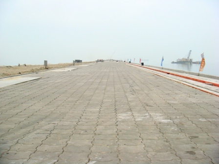目前,該項目卸荷板已完成65段,胸墻已完成62段,連鎖塊鋪設(shè)及鋼軌安裝也有序推進(jìn),預(yù)計8月份可完成全部工程施工。