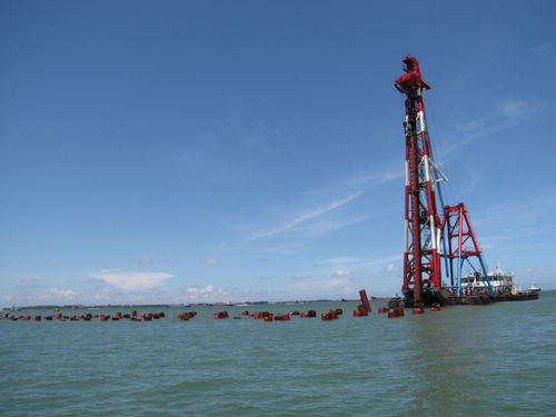 湛江港散貨碼頭工程包括30萬噸級卸船舶位一個,5萬噸級裝船舶一個,連接30萬噸級泊位的引橋和5萬噸級泊位的接岸結(jié)構(gòu)等。目前,5萬噸級主體、引橋施工和30萬噸級卸船舶位沉樁任務(wù)已順利完成,為下一步30萬噸碼頭工程安裝上橫梁、面板奠定了良好基礎(chǔ)。