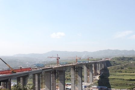 該橋?yàn)槿€控制性工程,大橋全長(zhǎng)860米,主橋?yàn)?5+2×120+65m預(yù)應(yīng)力砼連續(xù)剛構(gòu),是山西省首座雙向六車道大跨徑橋梁。自開(kāi)工以來(lái),太陽(yáng)八標(biāo)項(xiàng)目部克服征拆難、工期緊、技術(shù)難度大等不利因素,精心組織,不斷優(yōu)化施工方案,加大人力、物力及設(shè)備投入,同時(shí)與設(shè)計(jì)院和業(yè)主積極溝通,通過(guò)變更樁長(zhǎng)、合攏段施工順序等措施切實(shí)加快施工進(jìn)度,受到山西省交通廳和業(yè)主的充分肯定。