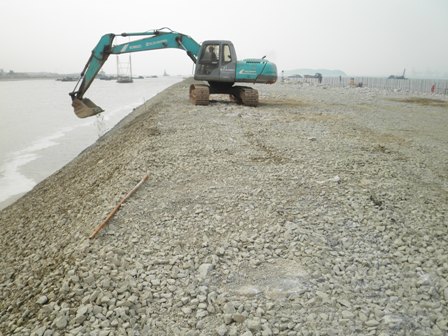 8號(hào)泊位拋石棱體施工總長278米,采用分段、分層拋石施工。項(xiàng)目部克服了施工作業(yè)面小、工序較多等困難,統(tǒng)籌規(guī)劃,精心組織,順利完成了8號(hào)泊位拋石棱體施工。