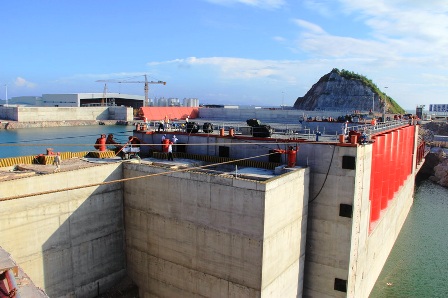 5月25日,港珠澳大橋島隧項(xiàng)目部塢門(mén)安裝組全體人員經(jīng)過(guò)12個(gè)小時(shí)的持續(xù)奮戰(zhàn),順利完成深塢塢門(mén)安裝典型施工。