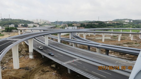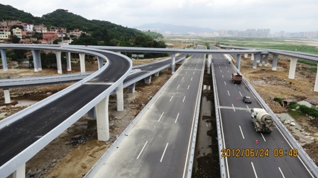 泉州市后渚立交項目于2011年2月開工,項目部合理組織施工,狠抓工程質(zhì)量、安全和進度,經(jīng)過16個月的努力,順利完成了合同內(nèi)2座主線橋和6座匝道橋(總長4921米)、480米路基路面工程、交通工程、照明工程等所有分部分項工程。