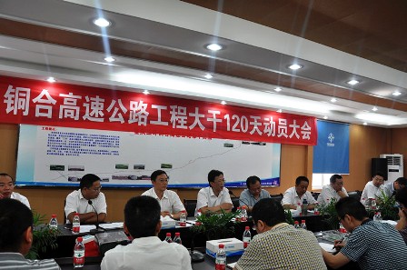 9月14日,為確保完成銅合高速公路年度建設(shè)目標(biāo),銅合公司召開銅合高速公路“大干120天”動(dòng)員大會(huì),要求各參建單位統(tǒng)一思想,明確責(zé)任,緊緊抓住當(dāng)前施工的黃金季節(jié),科學(xué)管理、狠抓工作落實(shí),優(yōu)質(zhì)高效推進(jìn)項(xiàng)目建設(shè)。