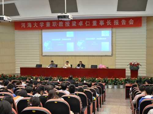 交流期間,河海大學(xué)舉行了“河海大學(xué)兼職教授梁卓仁董事長(zhǎng)專題報(bào)告會(huì)”,逾200人參加了報(bào)告會(huì)。會(huì)上,梁董事長(zhǎng)受聘為河海大學(xué)兼職教授,校長(zhǎng)王乘親自向梁董事長(zhǎng)頒發(fā)了兼職教授聘書(shū),學(xué)生代表為梁董事長(zhǎng)佩戴了河海大學(xué)?;詹⑺蜕硝r花。梁卓仁在答謝時(shí)表示,河海大學(xué)與四航局長(zhǎng)期合作,除了人才輸送培養(yǎng)、學(xué)歷深造、學(xué)術(shù)交流外,今年六月還簽約共建了研究生培養(yǎng)基地,首批12名學(xué)生已進(jìn)入基地實(shí)習(xí)。該基地建設(shè)平臺(tái)將進(jìn)一步加大雙方全方位合作,充分利用雙方資源,在人才引進(jìn)、員工培養(yǎng)、科研創(chuàng)新等方面創(chuàng)造更大成績(jī)。