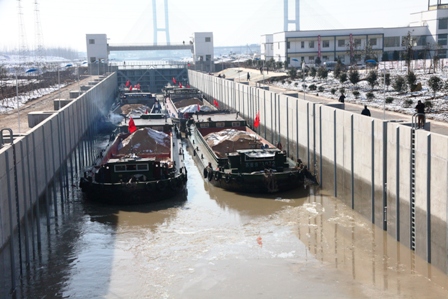2012年12月31日,歷時三年的鹽河航道整治工程交工通航,540萬淮安人民借港出海的“藍(lán)色夢想”終于成真。