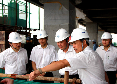 5月27日,四航局董事長(zhǎng)、黨委書記梁卓仁在副總經(jīng)理黃煥謙、總經(jīng)理助理江和明等人陪同下,到中交南方總部基地項(xiàng)目施工現(xiàn)場(chǎng)檢查指導(dǎo)工作,對(duì)進(jìn)一步推進(jìn)項(xiàng)目建設(shè)提出要求。