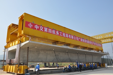 12月5日,鐵道部鐵路產(chǎn)品審查部審查組組長(zhǎng)吳國(guó)琦宣布:中交四航局云桂鐵路廣南制梁場(chǎng)順利通過(guò)《時(shí)速250公里客運(yùn)專線鐵路后張法預(yù)應(yīng)力混凝土簡(jiǎn)支箱梁國(guó)家生產(chǎn)許可》的審查。