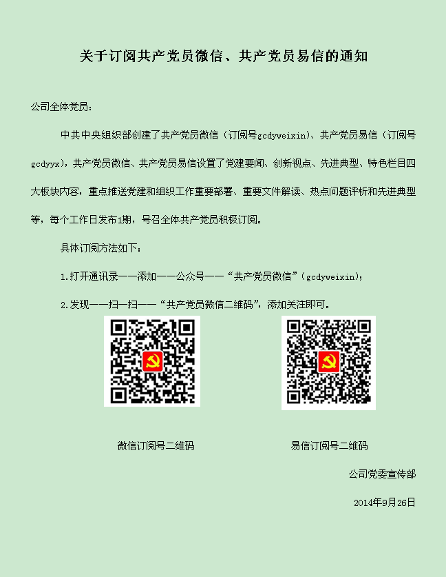 關(guān)于訂閱共產(chǎn)黨員微信、共產(chǎn)黨員易信的通知