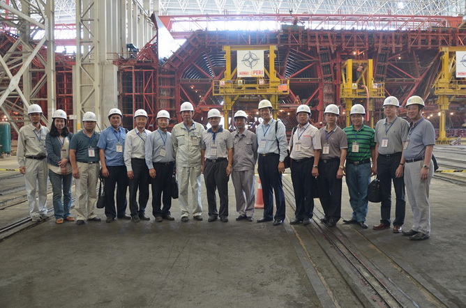 考察團(tuán)一行實(shí)地考察了牛頭島沉管預(yù)制廠、西人工島等施工現(xiàn)場(chǎng),了解了工程建設(shè)情況,聽(tīng)取了關(guān)于工程規(guī)模、施工進(jìn)展、關(guān)鍵工藝、現(xiàn)場(chǎng)管理等情況的介紹,并與項(xiàng)目管理人員進(jìn)行了交流。