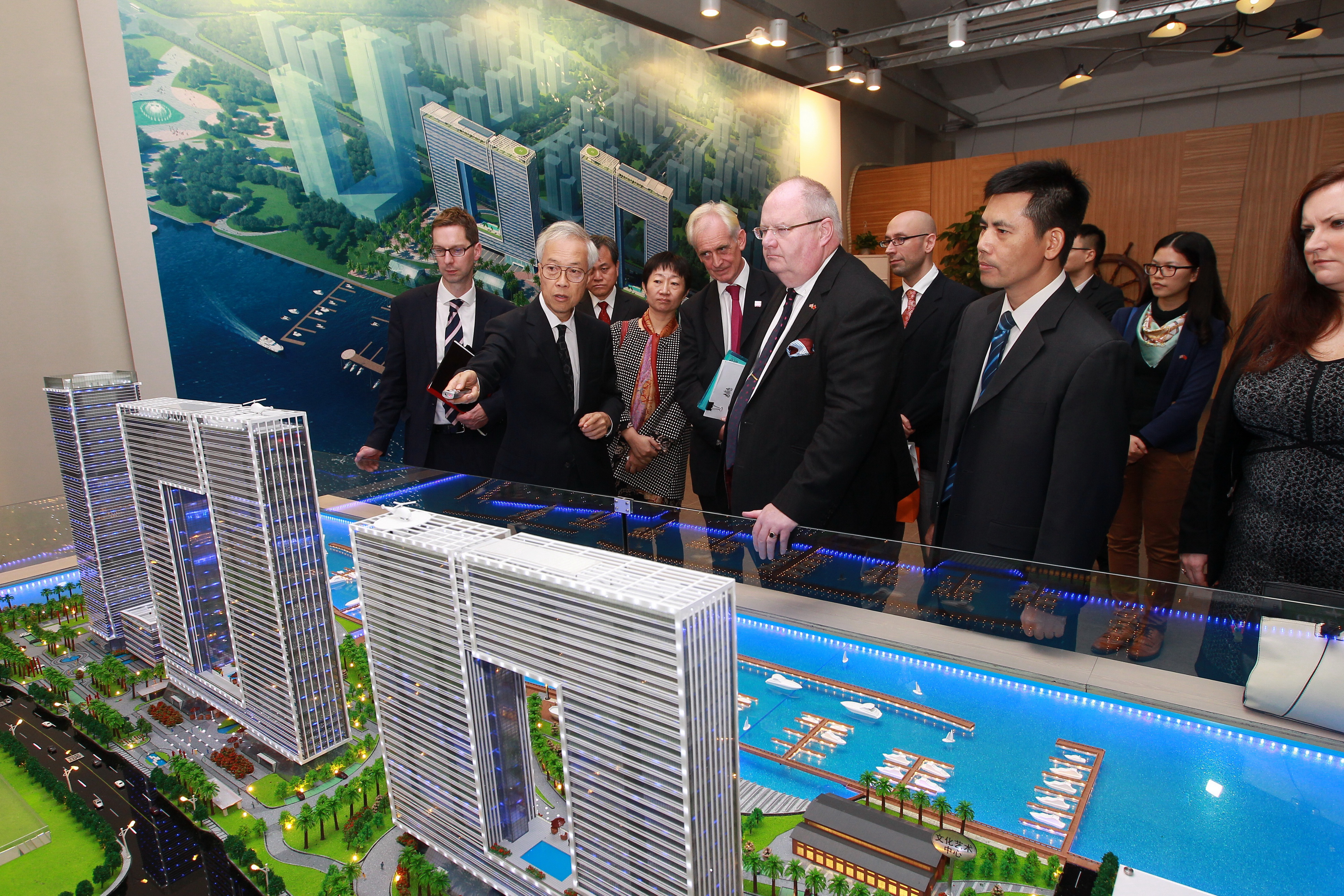 當天下午,在黃煥謙副總經(jīng)理陪同下,埃里克·皮克斯和摩根等英國客人參觀了中英合作的廣州之窗商務港項目,并肯定了該項目尊重歷史、活化社區(qū)的理念非常吻合世界潮流,其內(nèi)蘊的國際氣質(zhì)和經(jīng)濟文化交流功能,更可比肩倫敦金絲雀碼頭國際頂級濱江商務區(qū),必將成為全球舊區(qū)改造項目的典范。他表示,將進一步推動中國交建與英國貿(mào)易投資總署的深入合作,開啟共建“21世紀海上絲綢之路”的新航程。