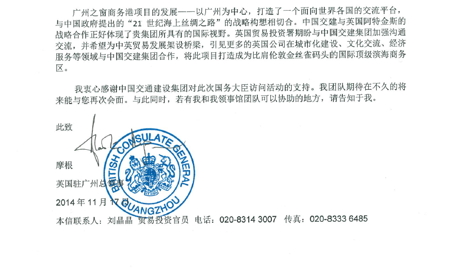 英國駐廣州總領館致信感謝四航局