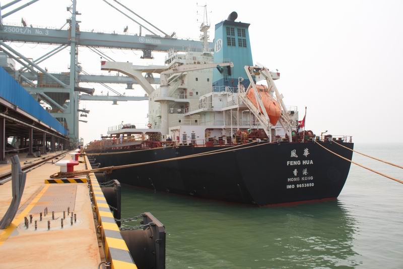 三公司承建的湛江鋼鐵散貨碼頭首靠外輪
