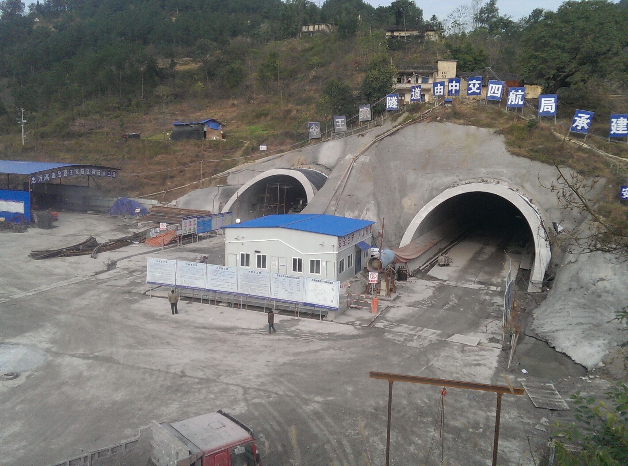 重慶忠縣至萬(wàn)州高速公路是重慶市“三環(huán)十射三聯(lián)線”高速公路網(wǎng)規(guī)劃中“十射”的一段,全長(zhǎng)78.53公里。四航局一公司承建的A2、A3合同段全長(zhǎng)18.59公里,截至目前已完成路基土石方工程90%、路基交驗(yàn)4.3公里,橋梁工程80%,隧道完成88%(共3座2648米,已貫通2座完成2330米)。項(xiàng)目部下步工作重點(diǎn)一是充分利用有利天氣做好路基交驗(yàn)工作,二是全力抓緊喻家溝大橋主橋和王家隧道等重點(diǎn)工程項(xiàng)目的施工進(jìn)度及安全質(zhì)量,三是督促落實(shí)各施工節(jié)點(diǎn)任務(wù)的完成,爭(zhēng)取2015年7月底半幅貫通、2016年3月達(dá)到通車條件等總體目標(biāo)任務(wù)的完成。