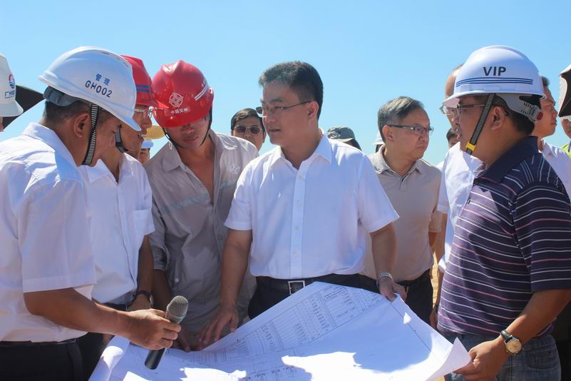 日前,海口市長倪強到四航局三公司承建的??谛潞L裝碼頭(一期)項目現(xiàn)場調(diào)研。