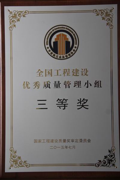 該獎(jiǎng)項(xiàng)由國(guó)家工程建設(shè)質(zhì)量獎(jiǎng)審定委員會(huì)頒發(fā),是三公司繼“提高機(jī)制砂道路混凝土面層光潔度”國(guó)家二等獎(jiǎng)QC成果之后的又一項(xiàng)QC活動(dòng)成果獎(jiǎng)。